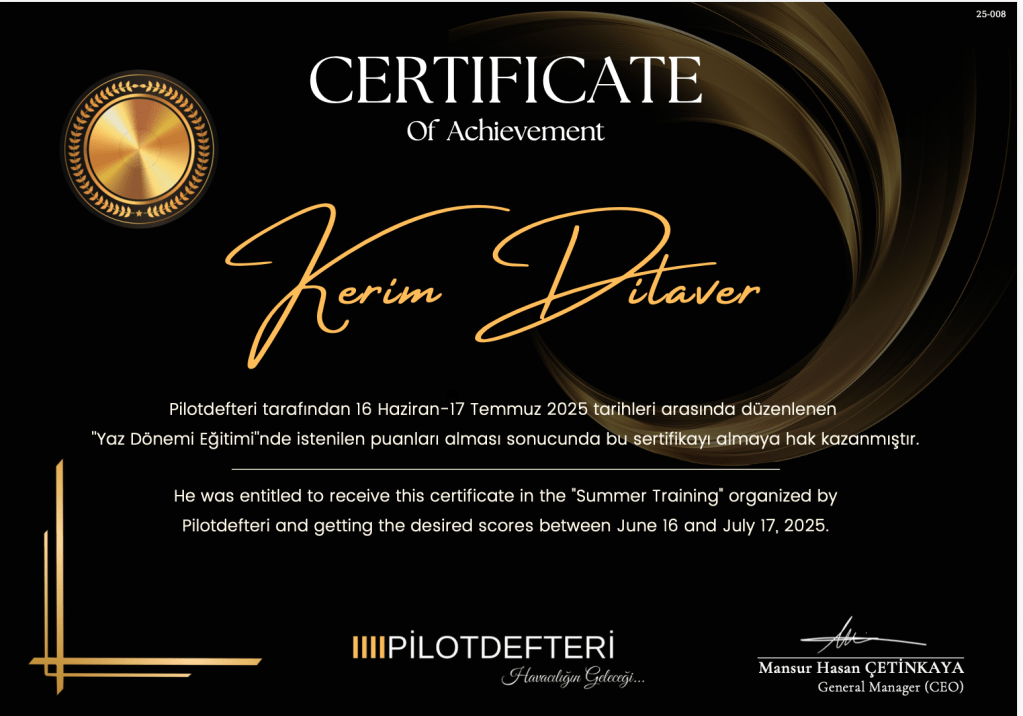 Pilotluk kariyerine başlamaya hazırlanan Dilaver, havacılık sektöründeki tutkusuyla geleceğin teknolojilerine yön verecek adımlar atmayı hedefliyor. Ancak onun hikayesi yalnızca gökyüzüyle sınırlı değil. İleri teknolojiye, inovasyona ve sürdürülebilir projelere olan ilgisi, onu uluslararası arenada dikkat çeken bir isim haline getirmeye hazırlanıyor.